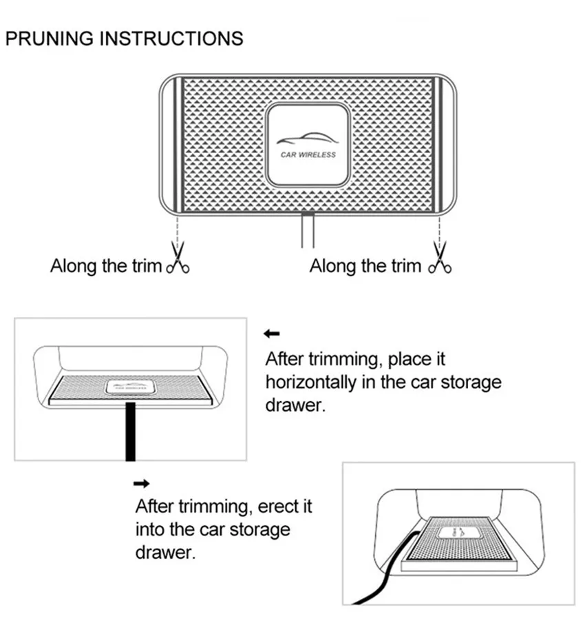 Cargador de coche rápido cargador inalámbrico está diseñado para el caso de transporte de coche, cajón de almacenamiento y otro espacio. No Desmonta las piezas del automóvil y actualiza directamente la carga inalámbrica. Está hecho de material de silicona, suave, fuerte y pegajoso. Conducción Seguridad. Al mismo tiempo, puede recortar de acuerdo con el tamaño del espacio del automóvil. Permítale experimentar mejor la diversión de la carga inalámbrica.