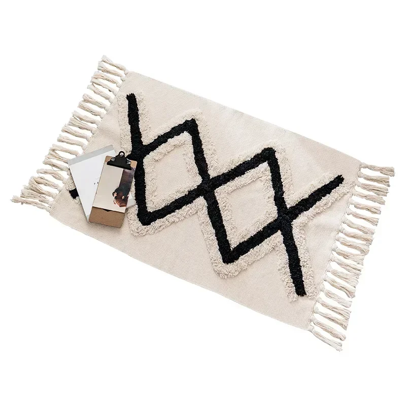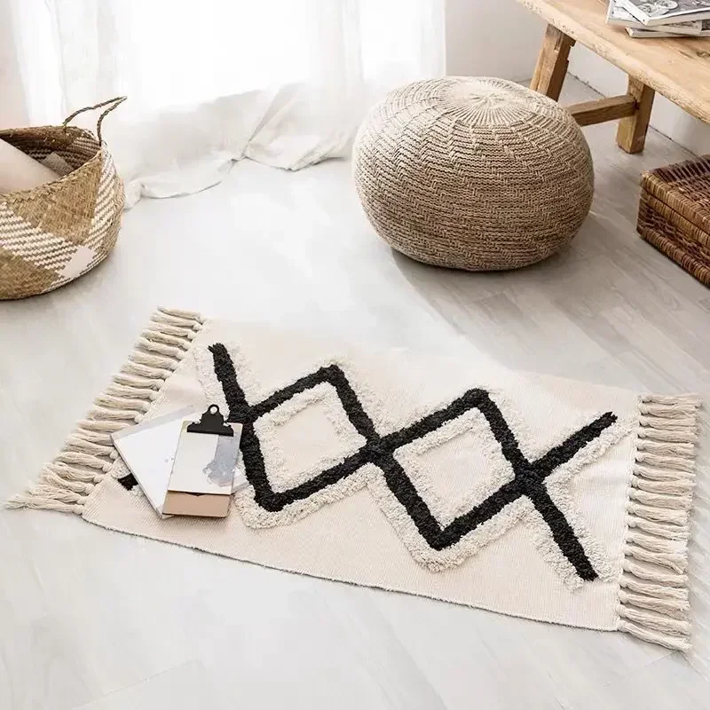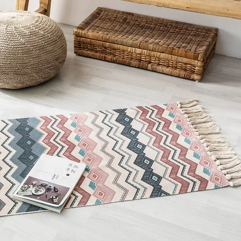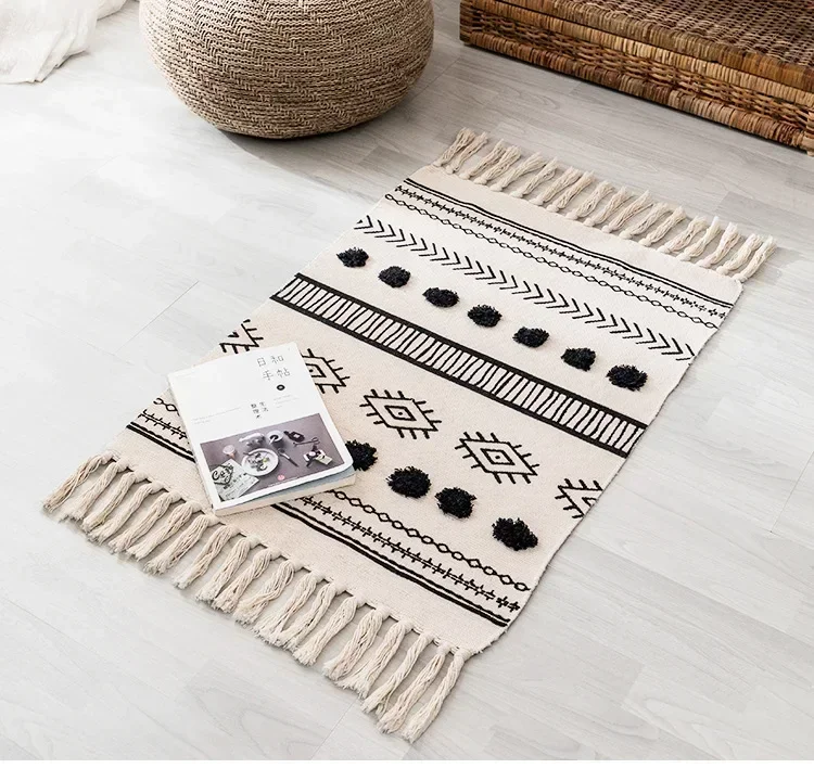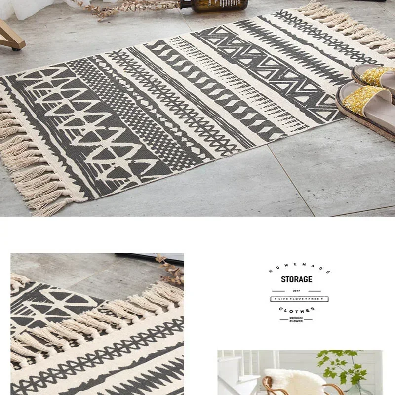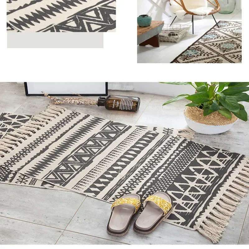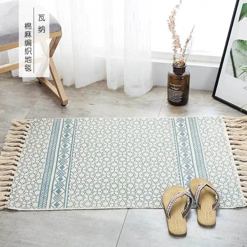 Alfombra de lino y algodón con borlas, tapete Retro bohemio, tapiz tejido a mano, manta decorativa, decoración del hogar