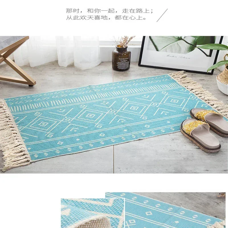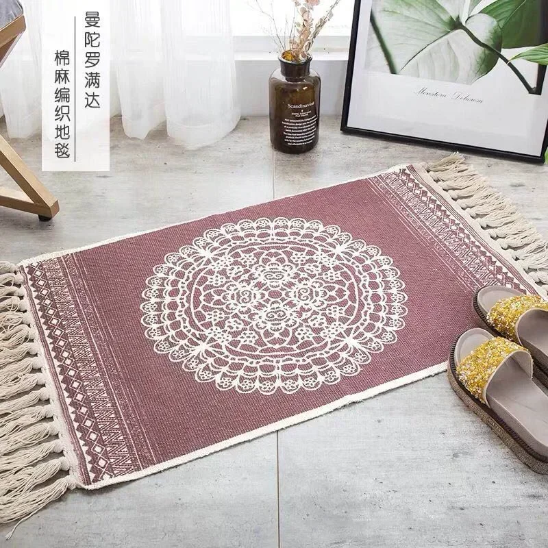 Alfombra de lino y algodón con borlas, tapete Retro bohemio, tapiz tejido a mano, manta decorativa, decoración del hogar