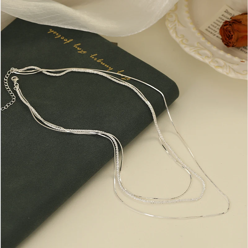 Collar de plata de ley 925 para mujer, joyería Europea Simple, varias capas, barra, cadenas de clavícula, regalos, NK163