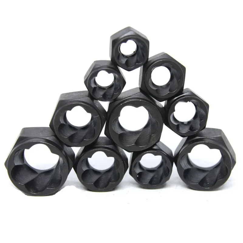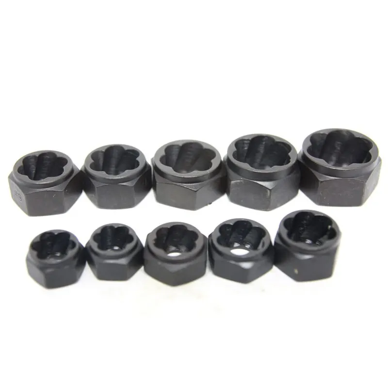 Extractor de pernos de tuerca rota, Kit de herramientas de roscado Hexagonal, juego de tuercas negras, 10 unidades
