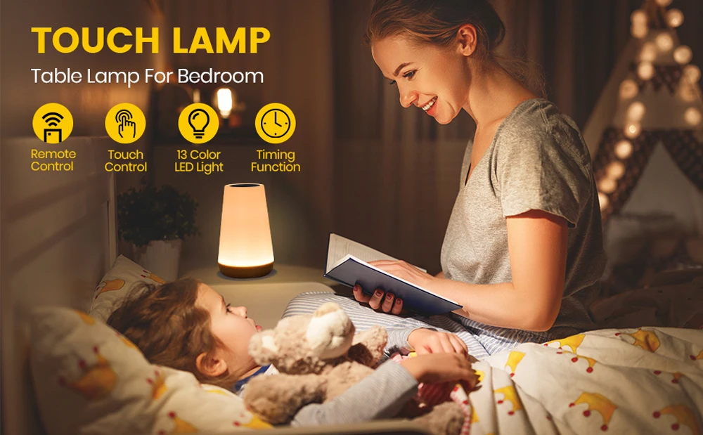 Control remoto 13 pantalla colorida: ciclo automático de una amplia selección de colores del espectro de colores rojo-verde-azul o elija y pause en su favorito, simplemente toca el panel de control en la parte superior de la lámpara táctil y cambia los colores que quieras, eso es ideal para relajar la iluminación del Fondo y la lectura.