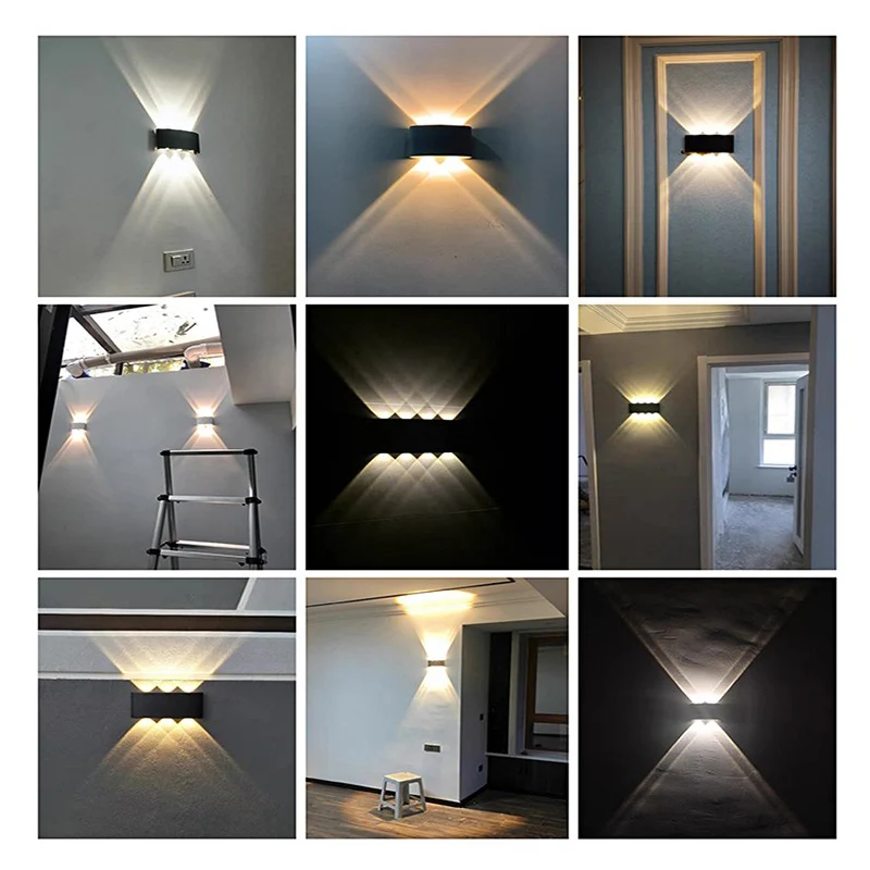Lámpara LED de pared IP65 para exteriores, iluminación de jardín impermeable, AC86-265 de aluminio para interiores, dormitorio, sala de estar, escaleras, pasillo