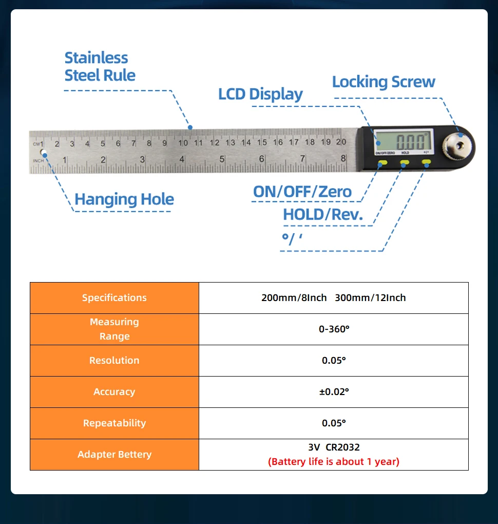 Tamaño de la regla: 200 mm/8 pulgadas; 300 mm/12 pulgadas