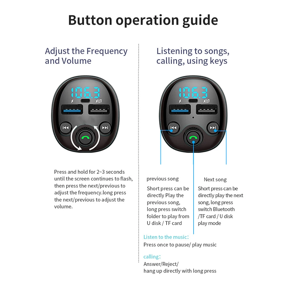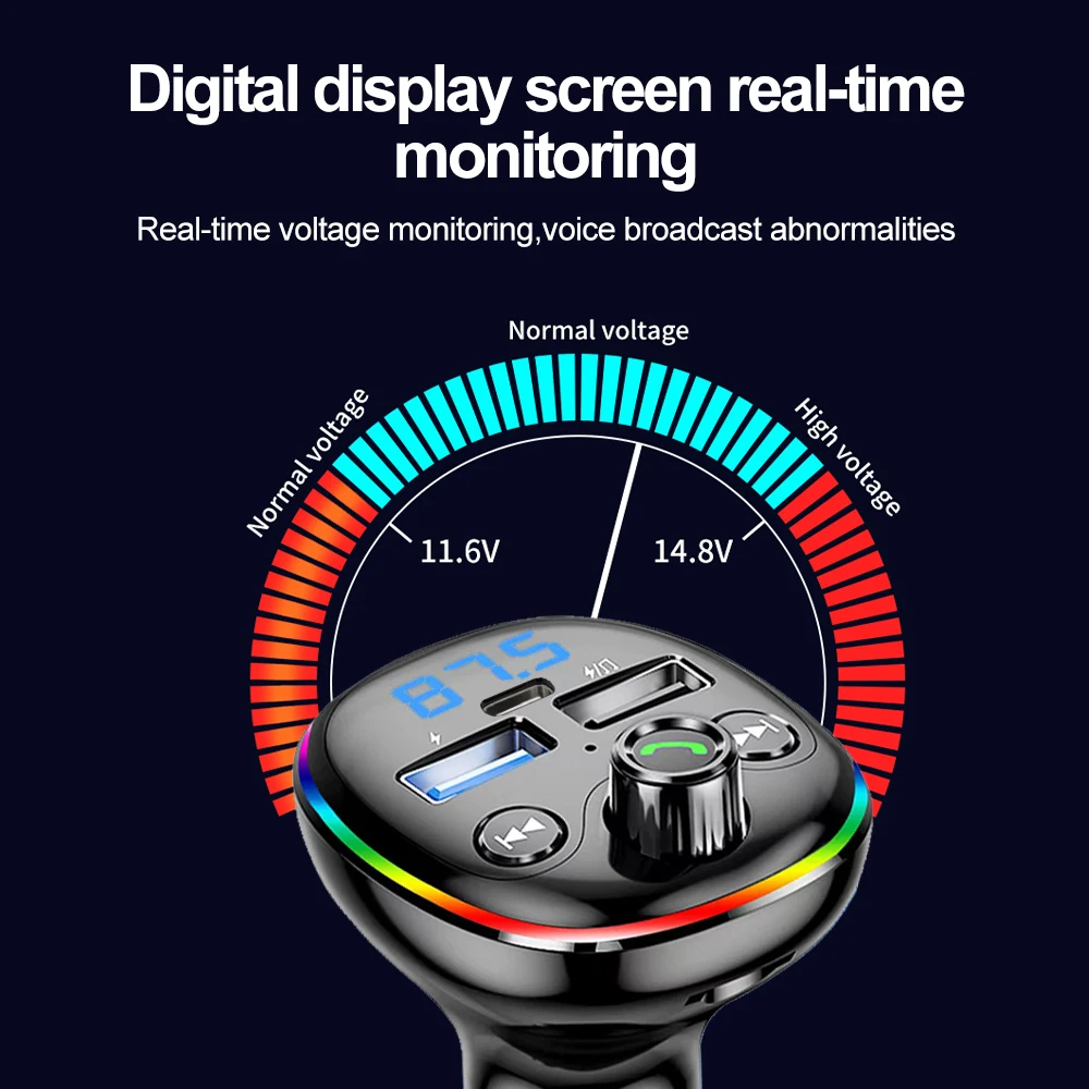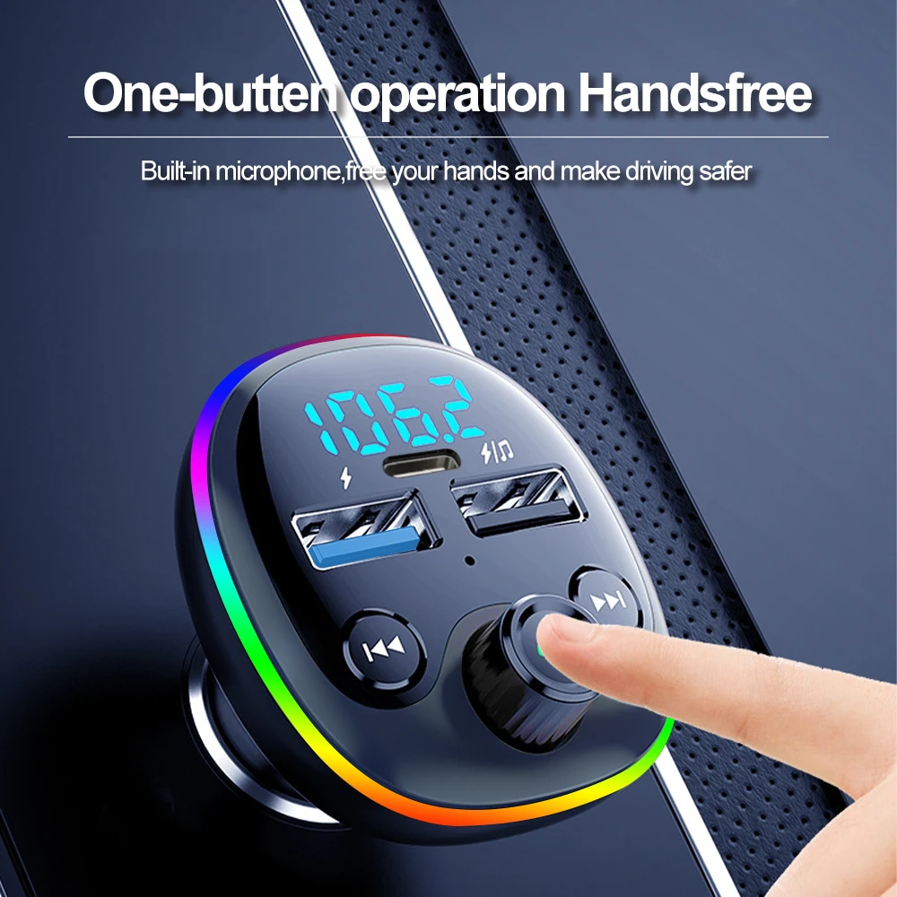 Transmisor FM Bluetooth para coche PD tipo C Dual USB 3.1A cargador rápido manos libres modulador de Radio REPRODUCTOR DE MP3 compatible con tarjeta TF
